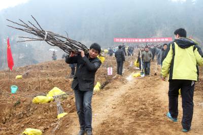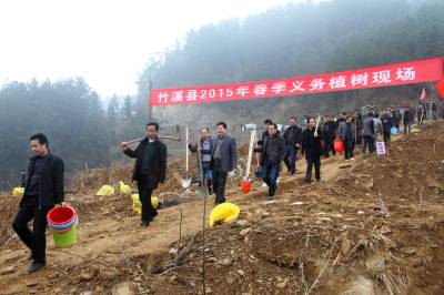 3月6日,竹溪县干部群众在义务植树点开展集中植树活动。三月,竹溪县掀起“三廊建设”(百里绿廊、百里果廊、百里景廊)高潮。据悉,该县三廊建设将百姓创收致富和修复生态相结合,建设高标准的花木长廊带,“百里绿廊”围绕“谷竹高速”竹溪段建设,将景观林带、荒山绿化、产业基地相结合,建设规模17500亩;“百里果廊” 沿“水天”路5个乡镇14个村建设面积5000亩,按照“一乡一品、一乡一景、春花秋实”的建设理念,栽植樱桃、桃子、柿子、柚子、木瓜等林果;“百里景廊”沿“兴界路”进行成片栽植竹林、映山红、棕树、枫树、红叶石楠等,美化乡村环境。