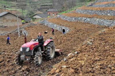 竹山5万农民备春耕 3月6日,竹山气温回升到18摄氏度,该县溢水镇燕子山村500多亩新整出的坡改梯里机械正松土平地,确保庄稼能高产稳产。据悉,竹山5万多农民已从浓厚的年节氛围中走出,备肥备耕确保今年能有个好收成。.竹山县国土资源局 石濡华 摄 邮编 442200 电话 13797858497