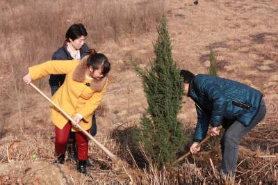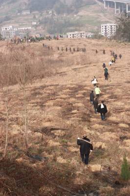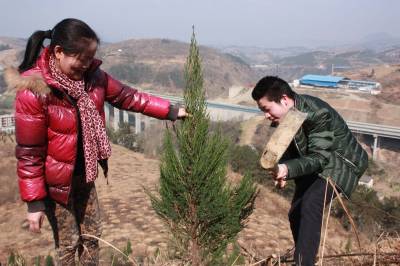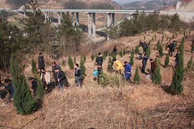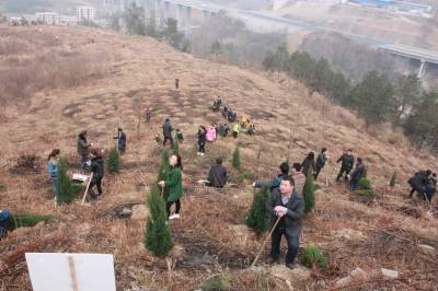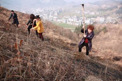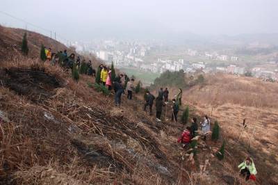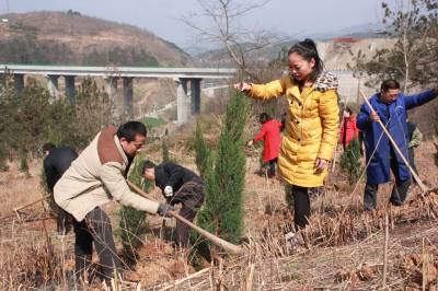 绿化家园庆“三八” 3月7日,竹溪县水坪镇干部职工牺牲公休时间在谷竹公路沿线的荒山上种松柏。连日来,该县动员各条战线的干部群众开展绿色崛起示范县建设,以绿化竹溪的实际行动庆祝国际“三八”妇女节。(视界网 胡雪梅 王忠春 摄)