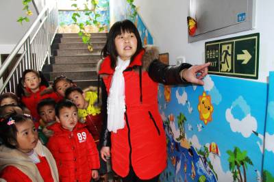 3月7日当地开学第一天,竹山县宝丰镇幸福娃幼儿园的教师正在指导幼儿认识安全出口标志。今春开学,该镇中小学、幼儿园通过组织学生观看安全教育图片、讲安全故事、学唱安全教育歌等多种形式,使学生掌握初步的安全常识,提高学生的安全防范意识和综合能力,教育学生“开开心心上学,平平安安回家”。