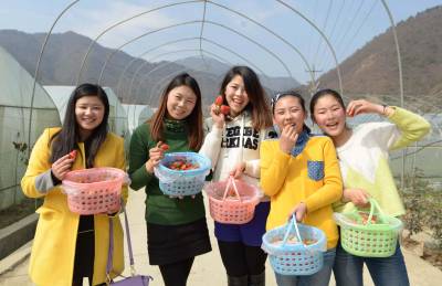 > 生态草莓引游客