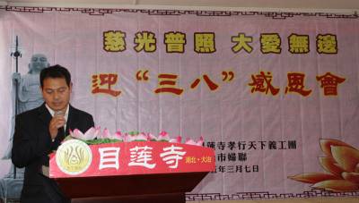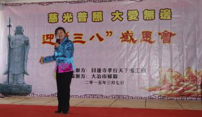 3月7日,大冶市妇联,大冶市目莲寺孝行天下义工团在目莲寺以“慈光普照,大爱无边"为主题, 开展迎"三八"大型感恩活动.孝敬父母不仅是一种美德,更是家度和睦,社会和谐的音符,用行为 报答父母养育之恩也是中华民族传统美德.在盛大感恩活动中,有袁雪峰收养老大娘的感动讲孝, 有刘正萍孝顺瘫痪多年的婆婆感动讲孝,有中医学会副秘书长,黄石理工学院医学院客座教授纪 少波应邀寺院讲授养生知识及孝男孝女们表演歌舞,瑜伽等精彩节目.