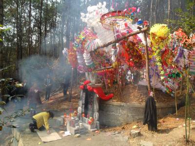 千百年来,民众有在清明节前后到故亲坟上插青、烧纸、放鞭、磕头以示缅怀纪念的习俗,是最为隆重的祭祖节日。