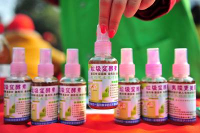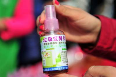 据悉,环保酵素是一种由植物蛋白质、矿物质和保幼激素天然合成的有机化合物。它是由混合糖和水的厨余垃圾,经厌氧发酵后产生的棕色液体,在日常生活中可以用于洗菜、洗碗、拖地,还有清洗地板、冷气机、厕所、厨房抽风机、油腻墙壁等用途,能取代一般家用的化学清洁用品。其制作方法简单,用厨余垃圾加上红糖和自来水,按照3:1:10的比例储存,经过三个月的自然发酵就可以使用。视界网 张国荣 摄