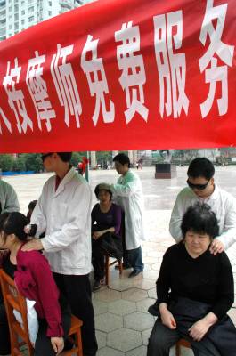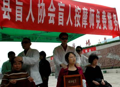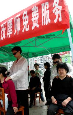 5月14日,长阳盲人协会组织盲人按摩师走上城区街头为市民讲授按摩知识,并免费提供按摩服务,用自己的双手感恩社会。当天,长阳土家族自治县”助残月”活动正式启动。(通讯员杜强)