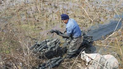 大冶保安的藕在黄石地区很有名,凡吃过保安藕的人都 说“保安的藕脆的像苹果一样!”每年的节前节后都是挖藕人的忙季。几个人承包一个藕塘,挖的、运的分工明确。 视界网: 宫少华