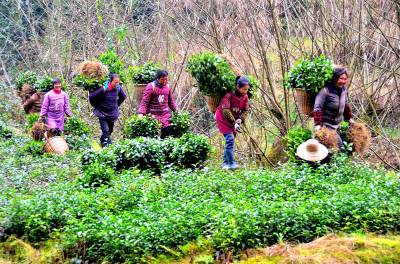 3月11日,恩施州宣恩县高罗乡倒流水村茶叶苗圃基地,村民正在起茶苗。 2011年,该县晓关侗族乡小溪茶叶专业合作社在招投标时中标,投资180万元在高罗乡倒流水、板寮成片连块的地带建茶叶苗圃150亩,年销售茶苗300万株。 据悉,宣恩有茶叶基地20万亩,其中采摘园15万亩,年产茶量1.48万吨。近年来,该县依托专业合作社改良茶园,良种化率达71.3%,位居全省前列。 宣恩县新闻中心 田长英 5822333
