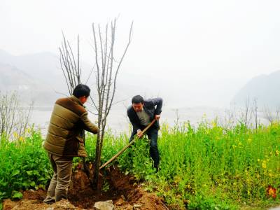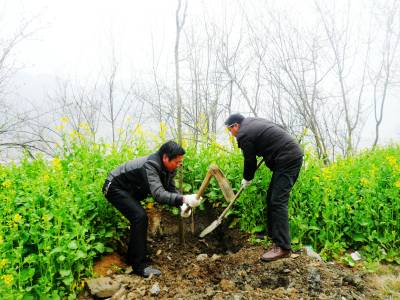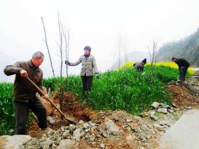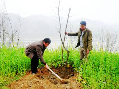 3月11日,地处南水北调中线核心水源区库尾的五峰乡组织机关干部职工和政府所在地村民,在泥河口公路沿线栽植木瓜树300多株。当天,该乡政府干部和22个村的劳力、20多个乡直机关职工全部出动,到各自指定的地点植树播绿护清水,开展“绿美郧阳”绿化家园行动,达到植树1350亩,所有插花地段都有绿树的目标。图为该乡政府干部在泥河口公路沿线栽植木瓜树。(视界网 周宗华摄) 作者地址:郧阳区五峰乡政府
