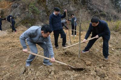 植树造林正当时 11日,咸丰县干部职工正在高乐山镇白地坪村参加义务植树活动。 据介绍,在今年的“三万”活动中,该县将继续推进退耕还林、天然林保护、石漠化治理等重点工程建设,全面完成“绿满荆楚”行动宜林地造林647亩、无立木林地造林3177亩。 据初步统计,当天该县300余名干部职工植树超过2000株。(视界网马辉摄)