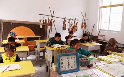 3月11日,竹山县宝丰镇七里岗教学点的8名学生正在新建起的教室里上课。去年以来,该镇加大财政投入力度,加强农村“微学校”规范化建设,推进义务教育均衡发展。目前全镇有6所新建教学点校舍已投入使用,对8所教学点校舍进行维修改造。同时,配齐教学点的专任教师,加大教学点食堂改造力度,逐步实现“微学校”办学条件的标准化。