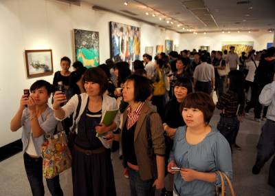 15日,湖北美术馆、大楚艺术机构隆重推出90多位年轻艺术家的力作,参观者众多。据展览总策划人桌霜女士介绍,本次展出的作品包括国画、油画、雕塑、新媒体VIDEO和装置艺术等多种艺术形式,以一位艺术家及一件作品”1加1”的组合模式展开进行,旨在让更多的、优秀的、年轻的艺术家走向前台,让艺术”贴”近大众。记者郑元昌摄
