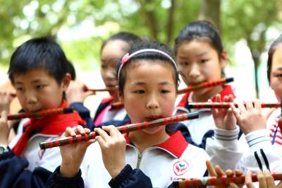 5月13日,京山县钱场镇小学笛子兴趣班学生正在课余时间练习吹笛子。该校为了培养学生健康向上、主动学习、全面发展的综合素质,定于每周四下午最后两节课开设”艺术教育”课程,开设了舞蹈、美术、书法、写作、演讲、武术、笛子等23个兴趣班,从而使学生课余生活丰富了,学习的劲头也更高了。通讯员李凯吴军秀摄