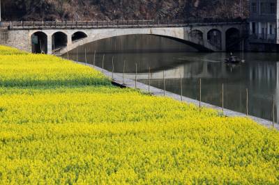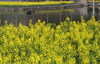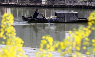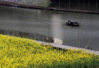 3月21日,竹溪县汇湾镇一农民在河道划船准备水上“春耕”。当日农历春分,天气晴好,竹溪县农民忙于春季农业生产,田间地头及河道池塘,一片繁忙。