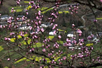 3月21日,竹溪县汇湾镇柳丰村景美如画。春分时节,竹溪县山乡金黄的油菜花、粉红的桃花、错落有致的民居,构成了一幅秀美春日图画。
