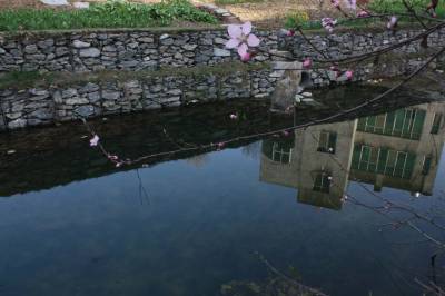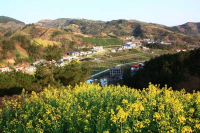 绿满新农村示范村 3月21日,省新农村建设示范村竹溪县水坪镇前进村山青青、水碧碧,一排生机勃勃的气象。该村建成高效有机生态茶园5600亩,是省新农村建设示范村、省级生态村、省水利厅原“三万”活动和对口帮扶联系村。