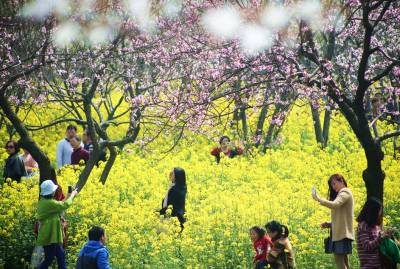 湖北十堰:书香满园春意浓 樱满枝头花正好 校园为民众开放赏花