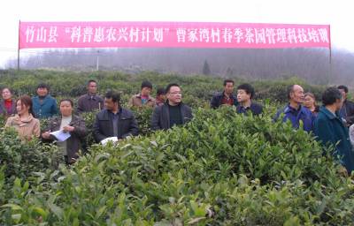 今春以来,竹山县以“扶贫先扶智”为抓手,增强变输血为造血功能,结合“十星级文明户”创建,加大“致富星”、“科教星”创建工作力度,有序开展茶叶、花生、烟叶、养殖等方面的技术培训,培育一大批“有文化、讲道德、懂技术、会经营”的新型农民,催生更多的农民经营主体。图为近日该县科协在宝丰镇曹家湾村开展“竹山县科普惠农兴村计划”春季茶园管理培训活动的情景。