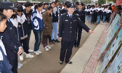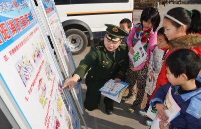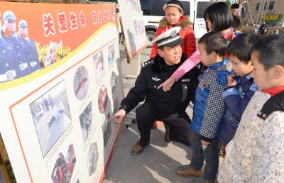 猫腰、护头、掩鼻、撤离......3月25日中小学生安全教育日来临之际,保康县公安局组织民警深入学校、街道、广场,以疏散演练、设置展板、发放宣传单等方式,面对面向中小学生传授逃生技能、遇险处置、防骗常识、健康饮食等安全防范知识。图为3月23日,民警正在开展中小学生安全教育日主题活动。(视界网 欧阳智慧 摄)