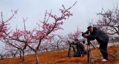 环城东郊村桃花源景区举办的首届桃花诗会吸引近百名文学爱好者走进桃园,亲近自然,泼墨抒怀,呤诗作画。200多幅书画、诗词作品尽展示帝乡之美。新市镇7万亩桃园含苞待放,襄阳栓栓歌友会40多位文艺家走进中国桃之乡,放歌桃园,为新市老家送去优美的歌声。妩媚多情的平林桃花更是让武汉、襄阳的摄影“发烧友”兴奋不已,扛着“长枪短炮”捕捉精美的瞬间。枣阳亚盟影视还邀请20多位航拍爱好者,记录万亩桃花笑春风壮观的景向。