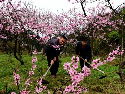 桃园精管促增收 3月23日,来凤县革勒车镇陈家沟村陈先贵夫妇在为桃园锄草、施肥。陈先贵以种植“中华寿桃”和黑珍珠葡萄为主业,以蜜蜂养殖为副业,年收入达10万余元。在他的带领下,该村以有25户村民加入水果专业合作社,各类水果面积达150亩。 本报视界网 姚丙然 来凤县革勒车镇文化服务中心 电话:13997799385