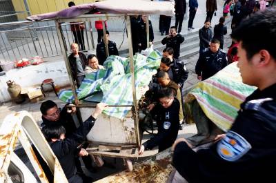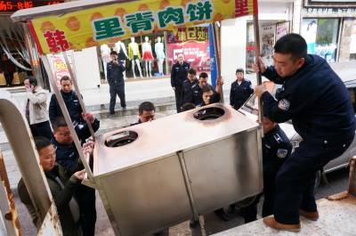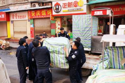 3月23日,十堰市郧阳区综合执法局城管大队组织执法队员对小商品市场大楼门前巷道进行整顿治理,对占道经营的食品加工车进行扣压,当场扣压食品加工车5辆,并立案处罚,以打通车辆和行人通道。 视界网 周家山 摄