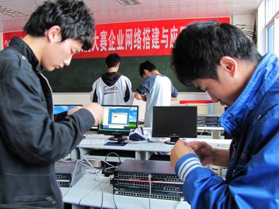 2010年5月15日,湖北省十堰市中等职业学校技能大赛中,选手正参加企业网络搭建与应用大赛。本次大赛在该市郧阳科技学校举行。开展本次大赛旨在检验中职学校办学实力,推进职业教育教学改革步伐。来自全市21支代表队、397名选手将在为期4天的时间内在数控技术、电工电子、机械加式、计算机应用等四大项六小项中展开比赛。