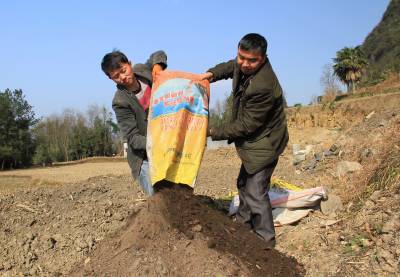 增加土地营养 3月24日,咸丰县清坪镇烟叶技术员黄武(右)正在帮助泗坝村2组村民尤森林搬运火土灰。由于该县农民科学生产和持续发展农业产业的意识不断增强,以前无人问津的火土灰、猪牛肥和沼液沼渣等农家肥,如今成为了他们增加土壤营养,增加农业收入的“香饽饽”。 本报视界网 周方奎 摄