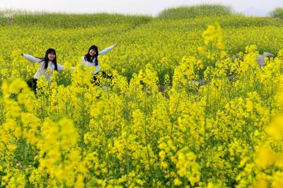 湖北十堰:书香满园春意浓 樱满枝头花正好 校园为民众开放赏花