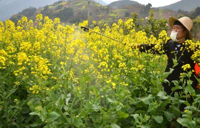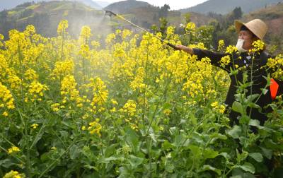 3月24日,巴东县官渡口镇巫峡口村菜农正在进行油菜叶面施硼肥。 该镇农业服务中心在全镇普遍推广种植良种油菜,并配送硼肥及使用技术资料,确保2万多亩油菜施用硼肥,目前长势良好,丰收在望。巴东县官渡口镇政府 向传辉摄 电话 18963928551