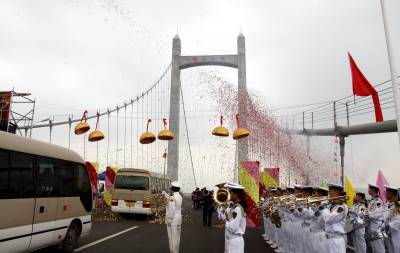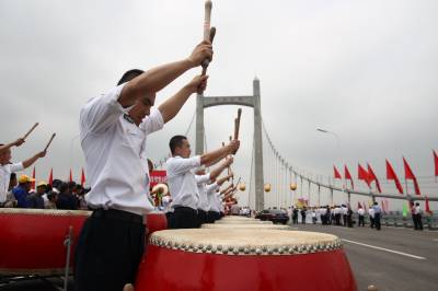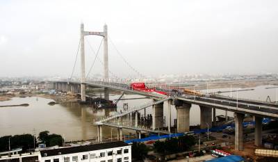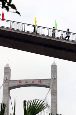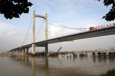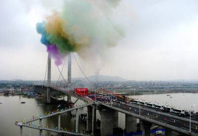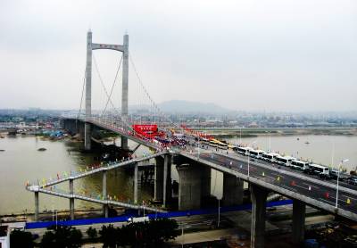 5月17日上午,国内最宽的自锚式悬索桥福州市鼓山大桥经过鄂企中铁大桥局两年零八个月的鏖战,正式宣告通车。18日,第十二届海峡两岸经贸交易会将在福州海峡国际会展中心隆重开幕。作为大会的重要配套工程,驱车从福州城区经该桥进入主会场海峡会展中心,全程不到10分钟,十分快捷方便。大桥局在鼓山大桥建设中创新了九项全国之最。该桥是在海西设计和建造的47座大桥,在福州修建的第15座特大桥。签约摄影师刘家华