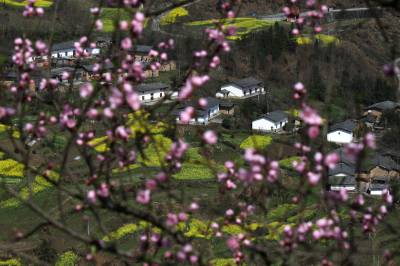 21日,拍摄的竹溪县汇湾镇桃花。春分后,山村民居在桃花、油菜花映衬下,如诗如画。