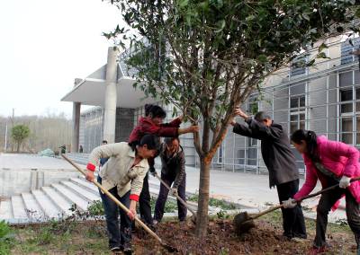 3月23日,在全国百个“红色旅游”经典景区之一的大悟县宣化店镇中原突围纪念馆建设现场,几名施工人员正合力将碗口粗的来年桂花树移栽到新展馆大门口,培土、浇水等工序随后跟进。馆内工人正在加紧对装修一新的大厅灯光系统进行调试,整个场馆呈现在一片火热的忙碌之中,以确保中原突围纪念馆新景区在今年6月顺利开馆。