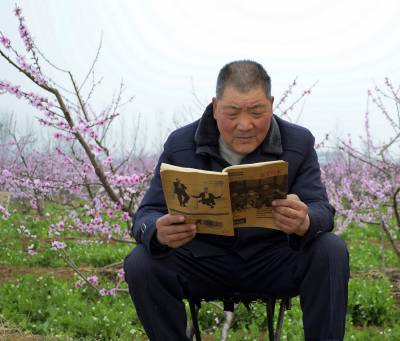 生态环保是刚刚结束的两会的重要课题。老河口市生态经济发展实验区(洪山嘴镇)坚持生态环境保护与经济发展并重,着力发展生态经济,辖区内到处桃红柳绿,人与自然和谐相处。图为25日上午,该镇中学退休教师李云福在万亩桃梨基地内津津有味的读书。