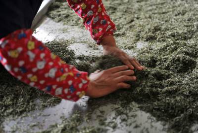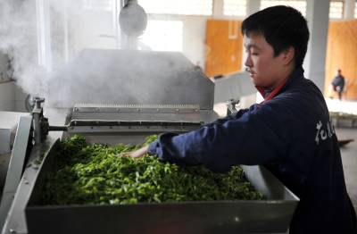 土苗山乡春茶加工忙 3月25日,在恩施市屯堡乡一茶叶加工企业,工人正在加工茶叶。 连日来,气温升高,湖北恩施土家族苗族自治州茶叶进入全面采摘期,当地茶叶加工企业加足马力,加班加点,进行“明前茶”的加工制作,以满足市场对春茶的广泛需求。 视界网 谢顺 摄 13277590198