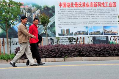 湖省宜昌市夷陵区是产茶大县区,目前已发展茶叶17万亩,产量9150吨,茶产业收入3.1亿元,茶农年收入5000元以上的有15000多户。 2009年5月,宜昌市夷陵区茶产业高新科技工业园开工建设。作为中国首个茶产业综合性科技工业园区,该项目建茶饮料、茶食品、茶保健品、茶化工、茶化纤、茶多酚提取等多位一体的综合性深加工产业链,共分三期建设,总投资15亿元人民币,目前一期主题工程已经完工,进入装饰阶段。该项目2013年全部建成后,年产值可达50亿元,利税6亿元,安置劳动就业2000人,带动三峡区域茶农增收50%以上。本报视界网张国荣摄