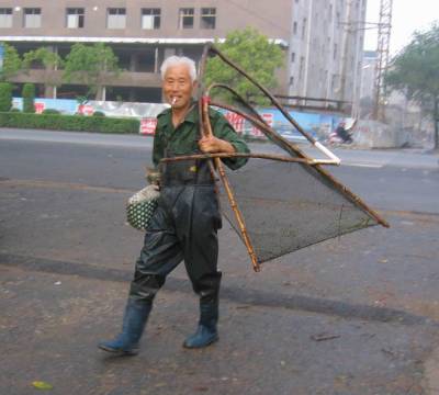 潇洒、乐观、自信、开心、阳光的赶鱼老人。2010.5.15摄于云梦街头。