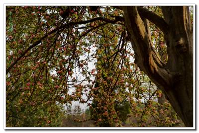 3月28日,在大悟大新桃园村青峰寺,笔者第一次看到了木瓜树开花,花儿呈五瓣的粉红色。据树旁边的70多岁的殷国水老人介绍,此树有400多年。木瓜树也分公母的,这棵木瓜树是母树,3至4月份开花, 9至10月结果,果椭圆形,长10~15cm,熟时黄绿色。此树一般每年可增粗0.3-1.0厘米不同。