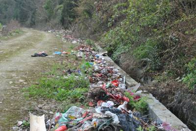 由于农村环境长期以来缺乏管理,即便村组建了垃圾池,村民的环保意识淡薄,习惯于随地乱倒,况且乡村的垃圾池均建在路边,垃圾也很难入池,致使大量的生产生活垃圾堆放于公路边、田边以及渠沟里,风一吹,垃圾满天飞。