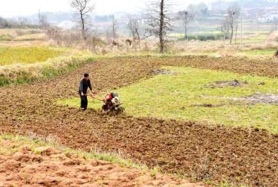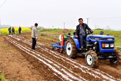 3月29日,摄影者在红安县城关、二程等乡镇一路看到春耕备耕的繁忙的生产景象,几台大小型机械在农田里播种、机耕。农业新机械、新品种、新技术、新模式以成为农民的新宠。图为该县城关镇竹林、二程镇民利等村组正在使用大小型机械在农田里播种、机耕。