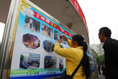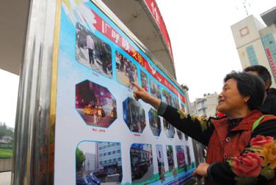 5月18日,市民在观看呼唤文明摄影图片展。当日,秭归县委宣传部、文明办、团县委、志愿者协会联合举办的”呼唤文明图片展”在长宁广场开展。20多名志愿者抓拍的部分市民不文明的举止和行为的158张照片,吸引了许多市民前来观看。