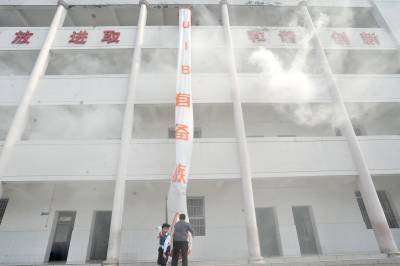 3月31日下午,湖北省宜昌市第一台逃生滑道亮相伍家岗小学。该滑道高13.4米,共分三层,外层为防火层,可承受700℃的高温,中间为隔烟层,里面为防静电层,火灾发生后,学生可以通过该逃生滑道从四楼安全快速地滑至一楼,每分钟可通过15人至25人。 近年来,宜昌市加强了对校园安全风险的防控工作,为学生和家长们营造安全的学习环境。 三峡晚报记者李传平摄。