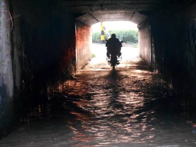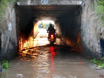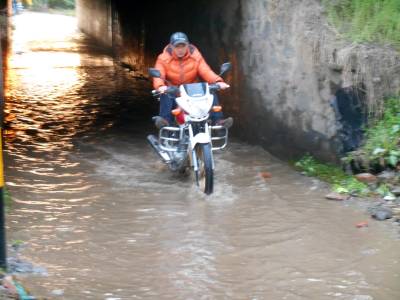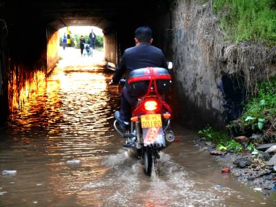 2015年4月2日,当日凌晨云梦城区电闪雷鸣,北风夹着中雨,积水越来越多,部分农田积水,多处涵洞积水,造成行人车辆通行障碍。图为云梦城区多处涵洞积水,阻碍影响人们通行。当日,湖北全省小到中雨,部分地区中到大雨,局部暴雨,造成灾害。恩施市一些地方突降暴雨,洪水袭击恩施市施鹤蔬菜专业合作社,洪水冲走了5间菌种室,成熟菌棒2万多茼,农田100多亩。据武汉中心气象台预报,4月上旬湖北全省大部地区较常年同期雨量明显偏多。