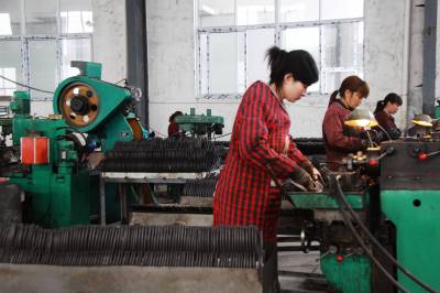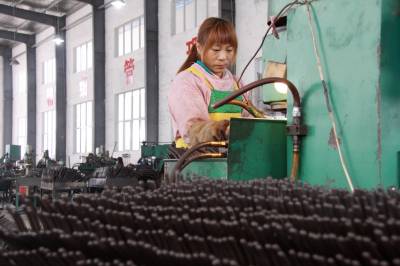 4月4日, 竹山县宝丰镇返乡农村妇女在宝丰创业园宏志五金公司加工车间忙碌着生产五金工具。今春以来,该镇计生、人社、农业等部门联合为返乡农家女家门口创业就业搭建平台,开展形式多样的技能培训,提供更多的就业机会,培植千余名返乡农家女成为家门口创业的农村“巾帼”能手。