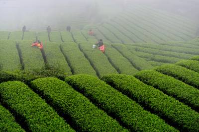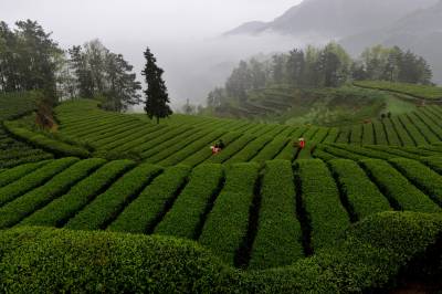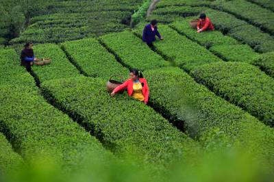 4月3日,三峡库区秭归县茅坪镇长岭村的茶农们正在抢季采明前茶。