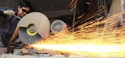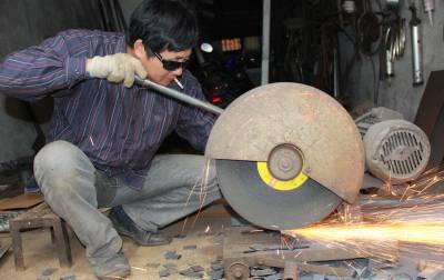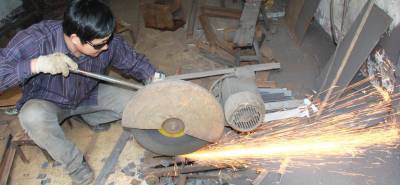 4月4日,湖北爱仕达炊具有限公司的切割师傅涂立友正在赶制订单。该公司投产5年来,恪守“制造厨房健康产品,提升人类生活品质”的理念,产品信誉不断上升,目前年生产优质不锈钢炊具、小家电、铝制品5500万套件,20%出口国外,从而取得了连续多年出口额居国内同行业首位的好成绩。 (本报视界网:王代金 摄影)