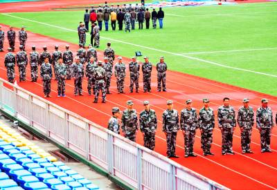 练强本领保驾护航 4月8日,巴东县民兵应急连队队员在操练。 为了加强民兵队伍建设,增强应急处突能力,巴东县人武部组织官渡口等镇的民兵应急分队队员开展一个星期的队列、警棍盾牌操、防爆术及森林防火等业务技能培训和操练,遇紧急情况保证队伍拉得出、能应战、战得赢,为地方经济社会发展保驾护航。(视界网 梁勇摄)