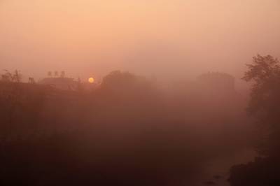 落日熔金映古宅