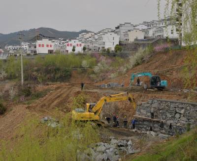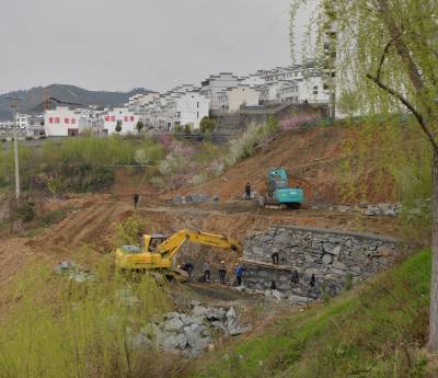 总概算资金1800万元的竹山县城关镇南门静家沟、上庸镇玉郎寨、官渡集镇2号场坪、深河乡官财山4大滑坡体治理,自去年下半年起动到今年4月上旬止,已到位资金1300万元,已完成治理工程量的50% ,预计7月底前全部完工,1500多名滑坡体群众汛期安全隐患得以消除。另麻家渡镇涧沟梁搬迁避让、城关镇将军潭、县委党校三个滑坡体已列入该县今年治理计划,目前正组织专家组对工程治理进行勘察设计。图为4月8日,上庸镇十星广场外小型滑坡体进行工程治理正紧张施工。竹山县国土资源局 石濡华 摄 邮编442200