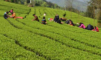 恩施土家族苗族自治州恩施市盛产茶叶,由于青壮年外出务工人员较多,使当地产茶区采茶工人少短缺,严重影响采茶进度和收入。连日来,当地政府组织政府机关、事业单位工作人员奔赴产茶乡,帮助茶农抢采春茶,为农分忧。 杨顺丕摄