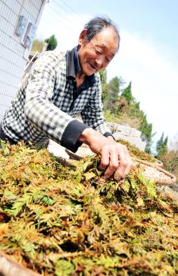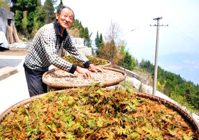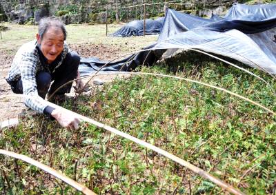 繁育苗木等“金”来 10日,农民在红豆杉苗圃地里锄草施肥。 为了增加农民收入,去年,巴东县绿环珍稀植物繁育专业合作社在信陵镇老屋场村租地30亩,与当地农民人工培育红豆杉、楠树、雪松、女贞、樟树等国家名贵珍稀植物。目前,合作社一期投入3万元,已培育红豆杉苗木8000余株。(视界网 梁勇 摄)
